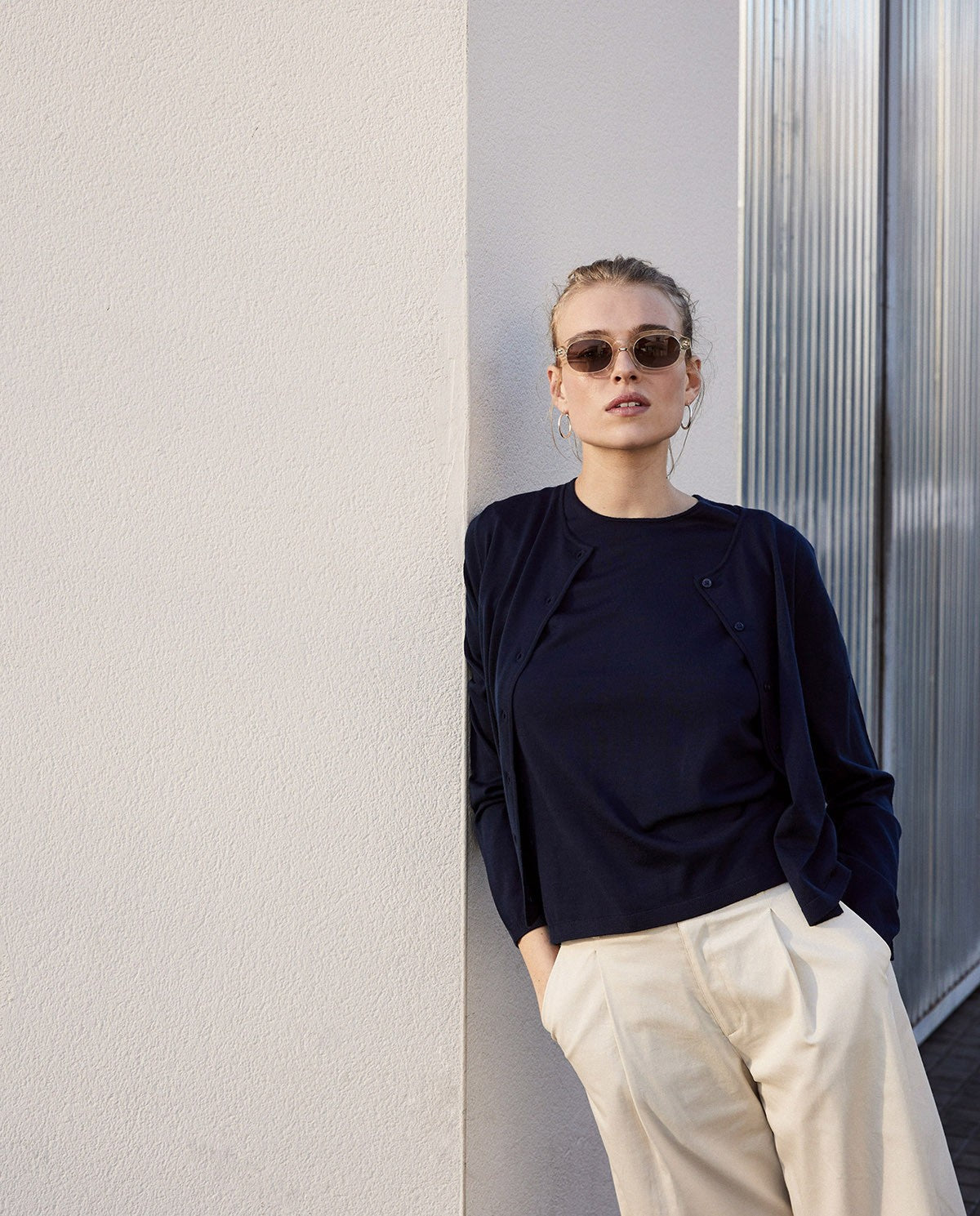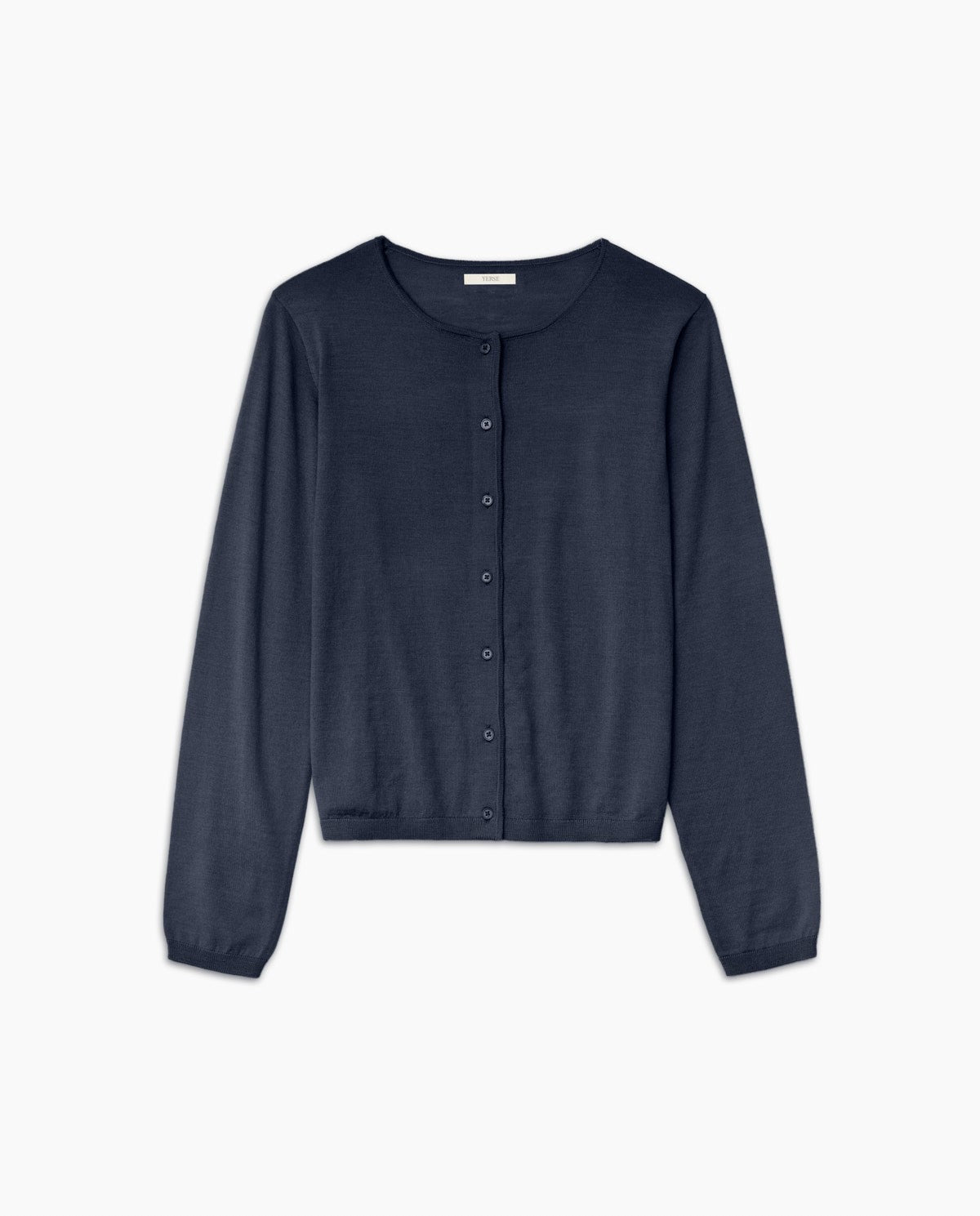 Cardigan in 100% lana merino. Taglio dritto. Scollo rotondo. Maniche lunghe. Chiusura con bottoni. Dettagli a coste.  Composizione: 100% lana merino.  La modella è alta 175 cm e indossa la taglia S. MATERIALI: La lana merino si distingue per la sua particolare delicatezza e morbidezza, nonché per le sue eccellenti proprietà termiche.