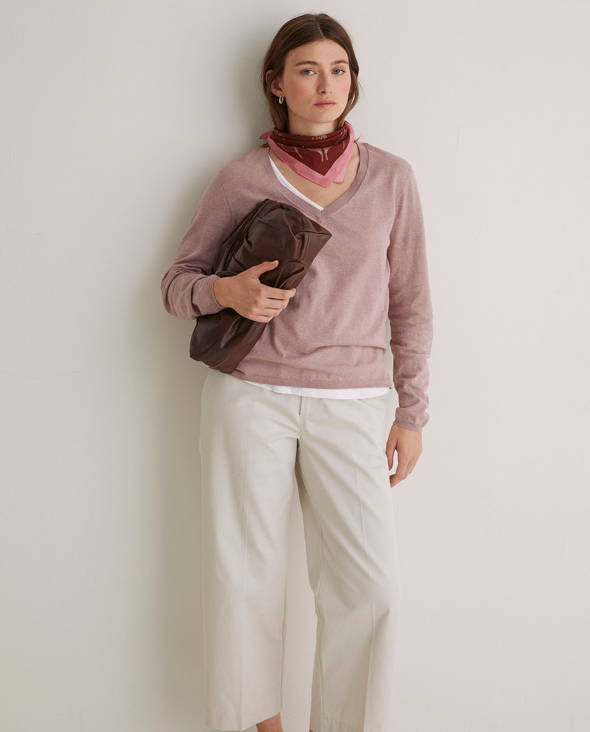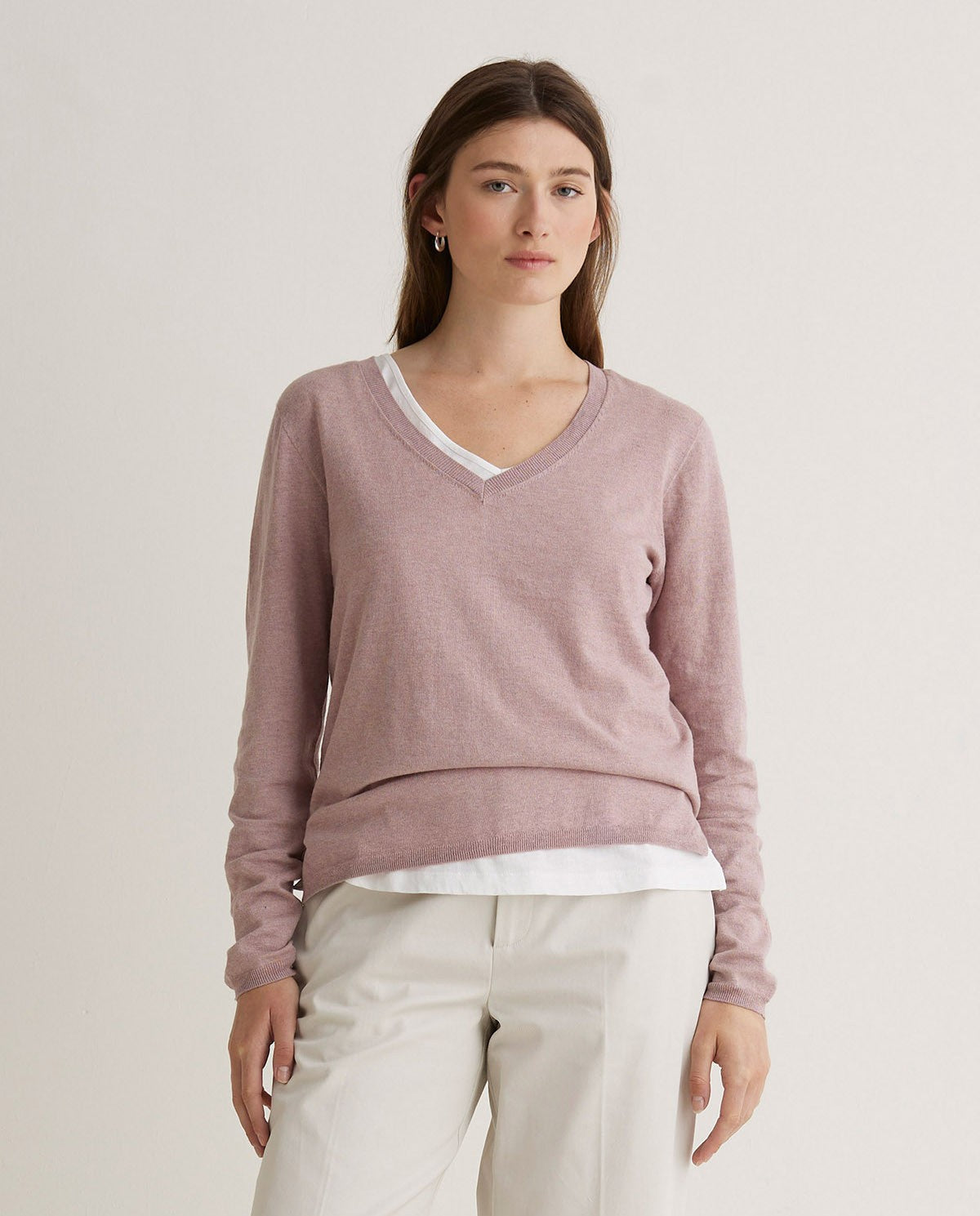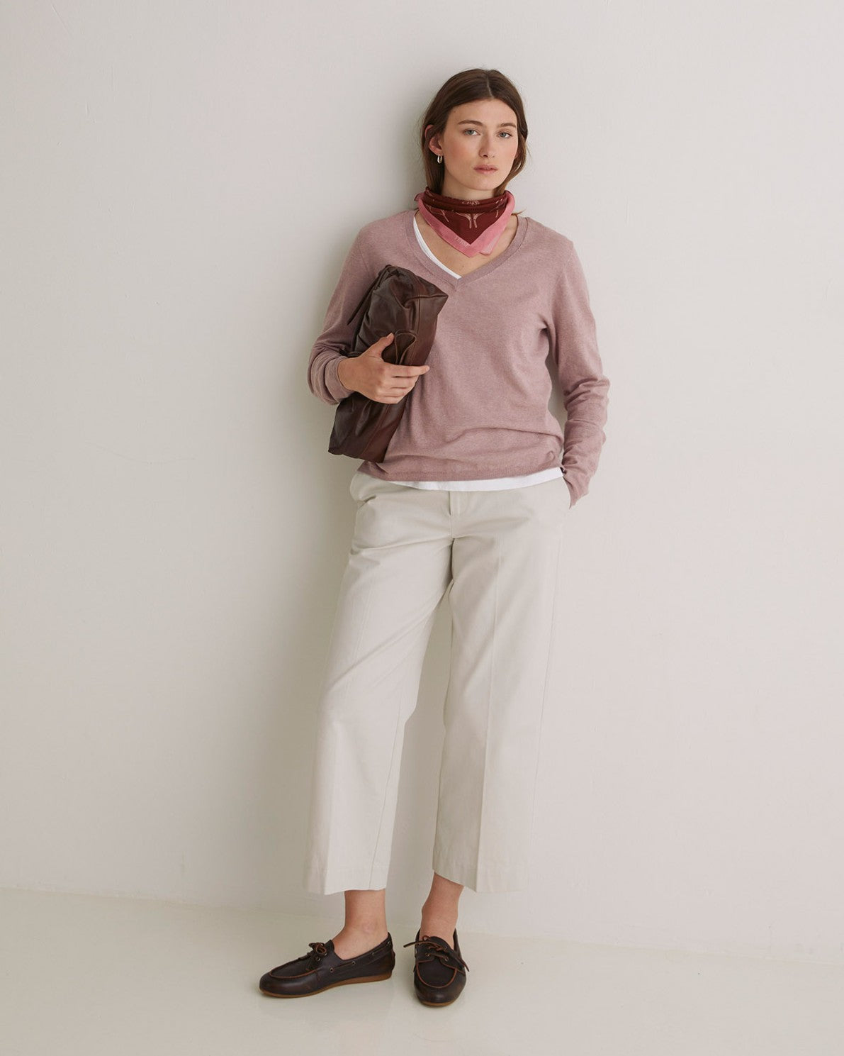 Jersey di cotone biologico al 100%.  Vestibilità regolare.  Scollo a V.  Maniche lunghe.  Dettagli a costine.  Dettaglio del logo ricamato.  Spacchi laterali sull'orlo.  Composizione: 100% cotone biologico. La modella è alta 175 cm e indossa la taglia S.   MATERIALI:  Il cotone biologico viene coltivato senza pesticidi o fertilizzanti chimici, il che lo rende un'opzione più morbida e delicata sulla pelle.  È biodegradabile e prodotto in modo sostenibile ed ecologico, riducendo al minimo l'impatto sull'ambiente.
