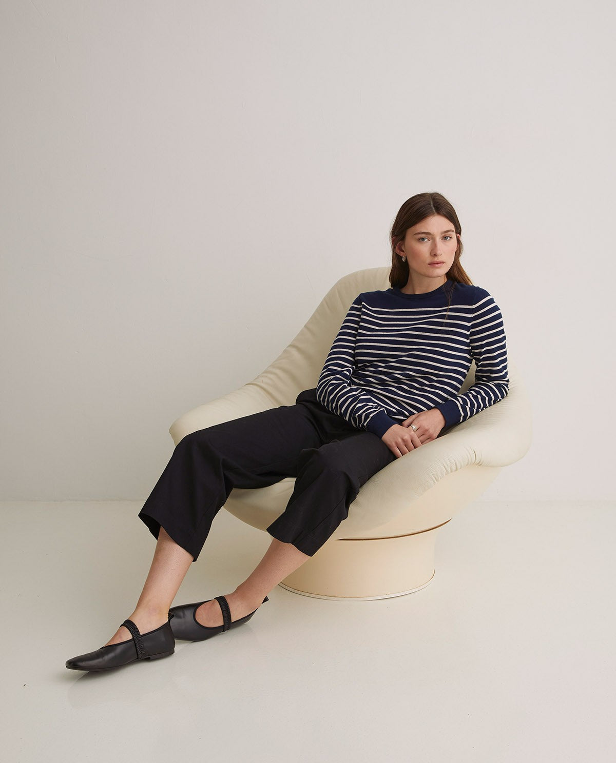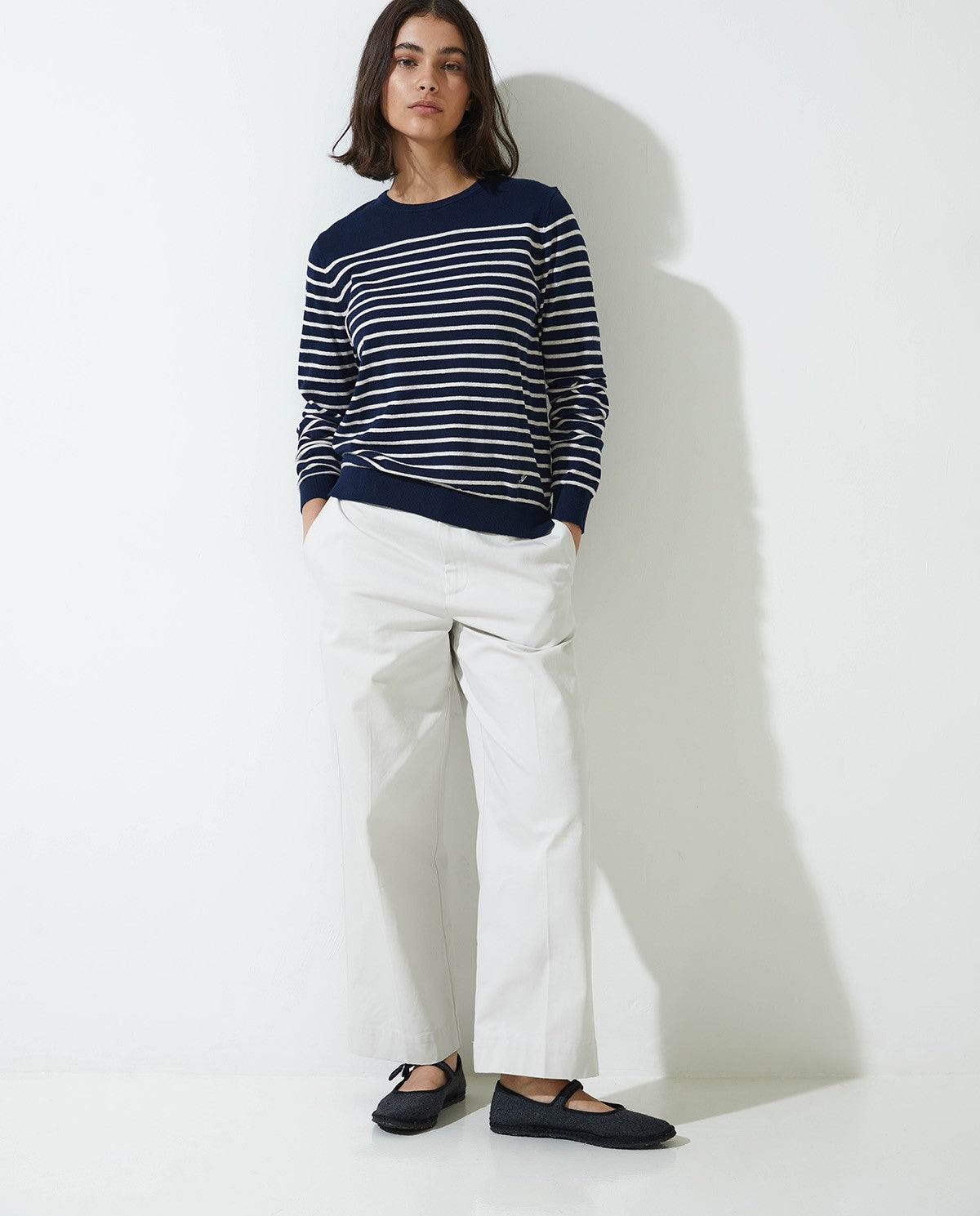 Jersey di cotone biologico al 100%.  Stampa a righe.  Vestibilità regolare.  Scollo rotondo.  Maniche lunghe.  Ricamo.  Composizione: 100% cotone biologico. La modella è alta 175 cm e indossa la taglia S.   Il cotone biologico viene coltivato senza pesticidi o fertilizzanti chimici, il che lo rende un'opzione più morbida e delicata sulla pelle.  È biodegradabile e prodotto in modo sostenibile ed ecologico, riducendo al minimo l'impatto sull'ambiente