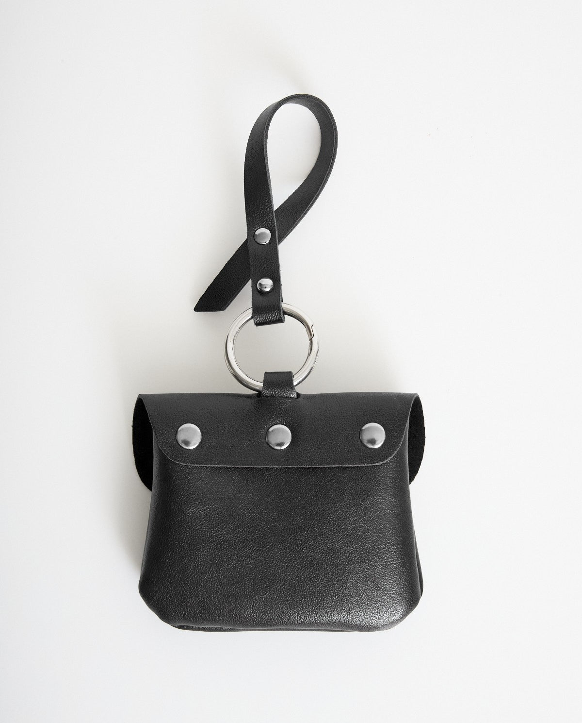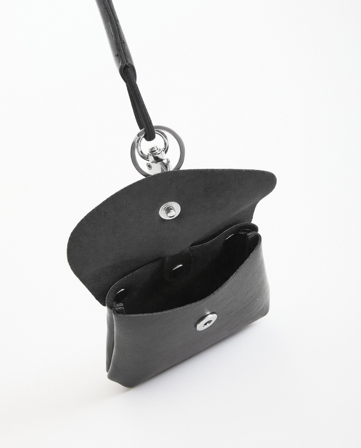 Mini portafoglio. Chiusura con bottone automatico. Tracolla rimovibile con moschettone.