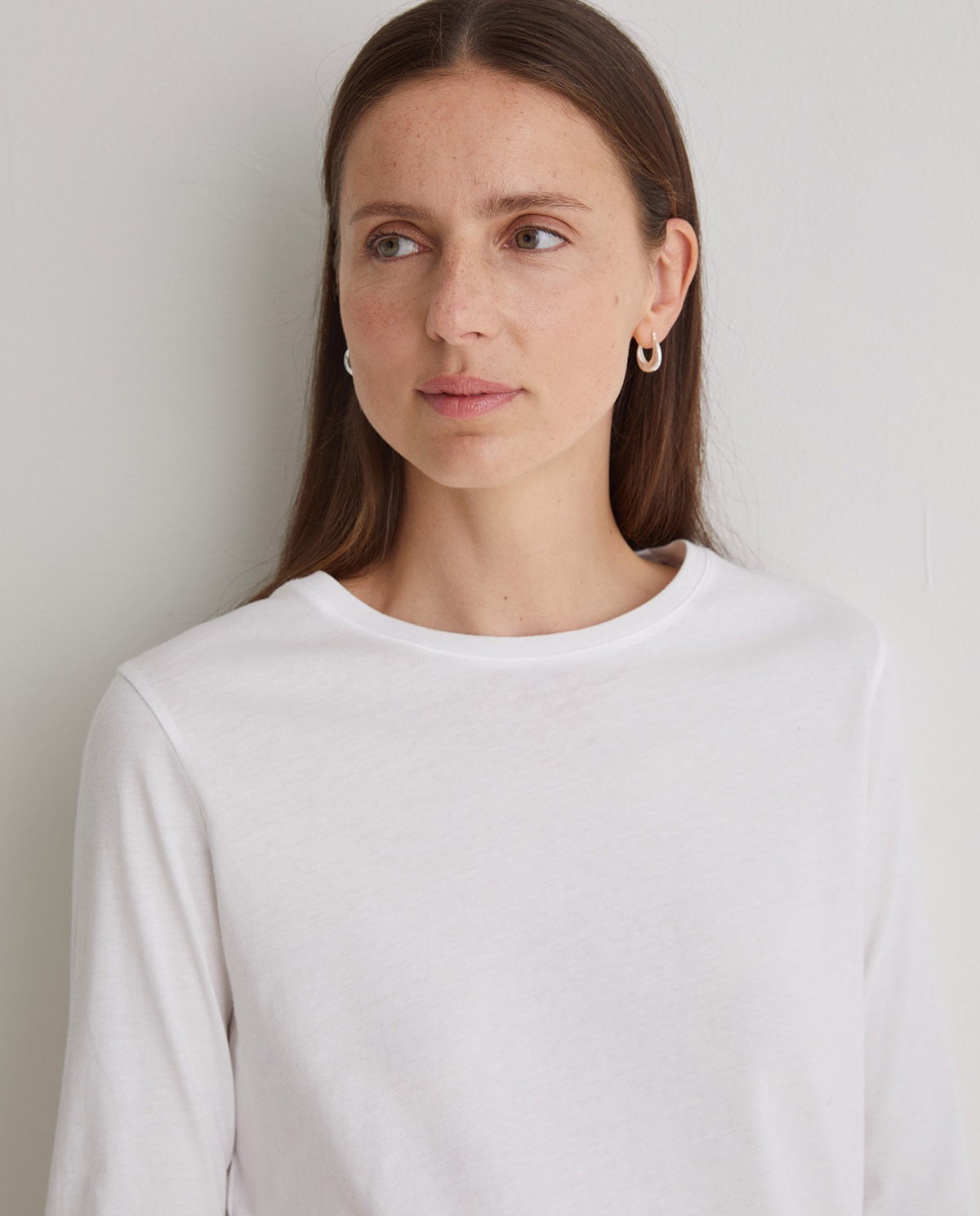 Maglietta in cotone biologico al 100%.  Vestibilità regolare.  Scollo rotondo.  Maniche lunghe.  Dettaglio del logo ricamato.  Composizione: 100% cotone biologico. La modella è alta 175 cm e indossa la taglia S.   MATERIALI:  Il cotone biologico viene coltivato senza pesticidi o fertilizzanti chimici, il che lo rende un'opzione più morbida e delicata sulla pelle.  È biodegradabile e prodotto in modo sostenibile ed ecologico, riducendo al minimo l'impatto sull'ambiente.