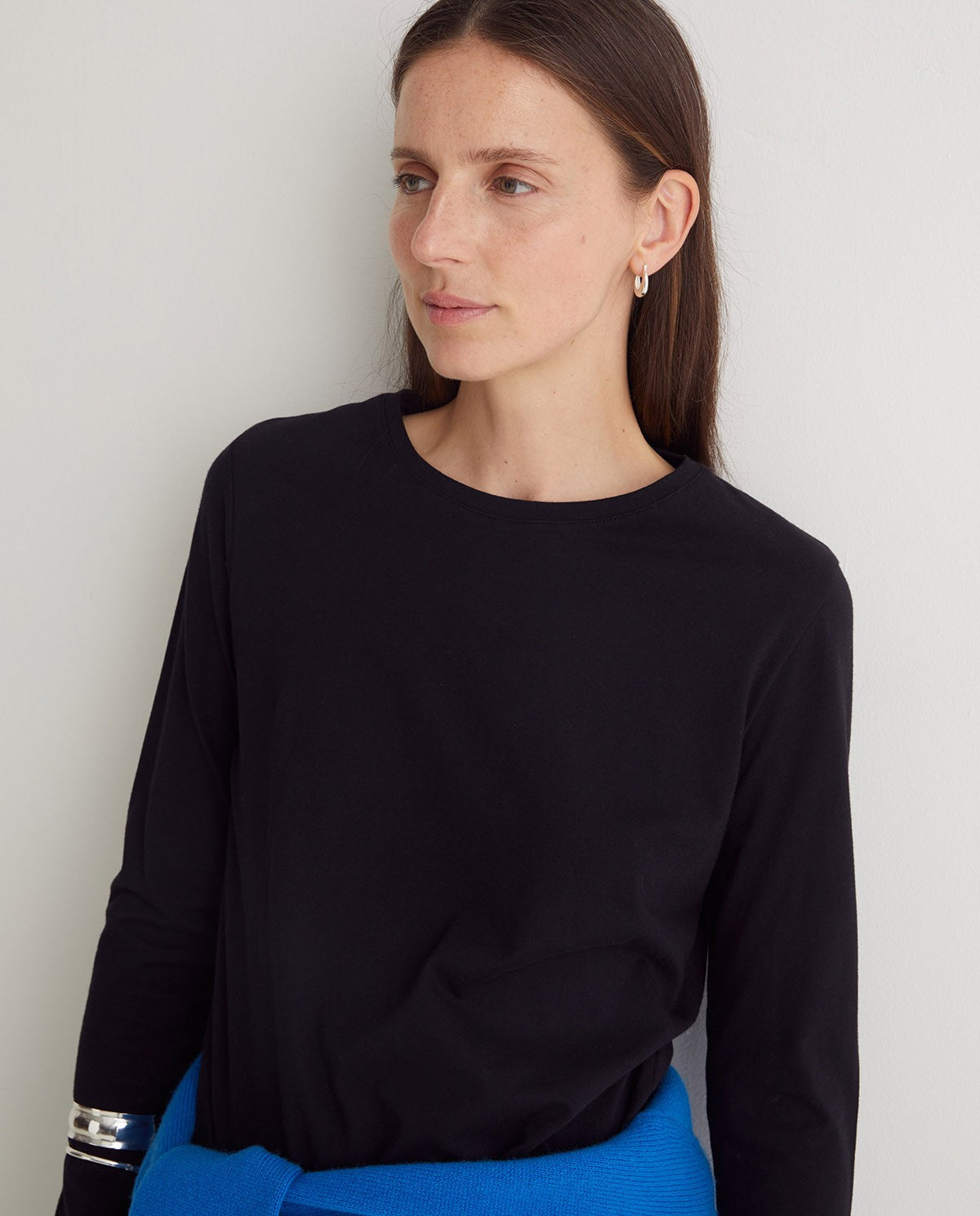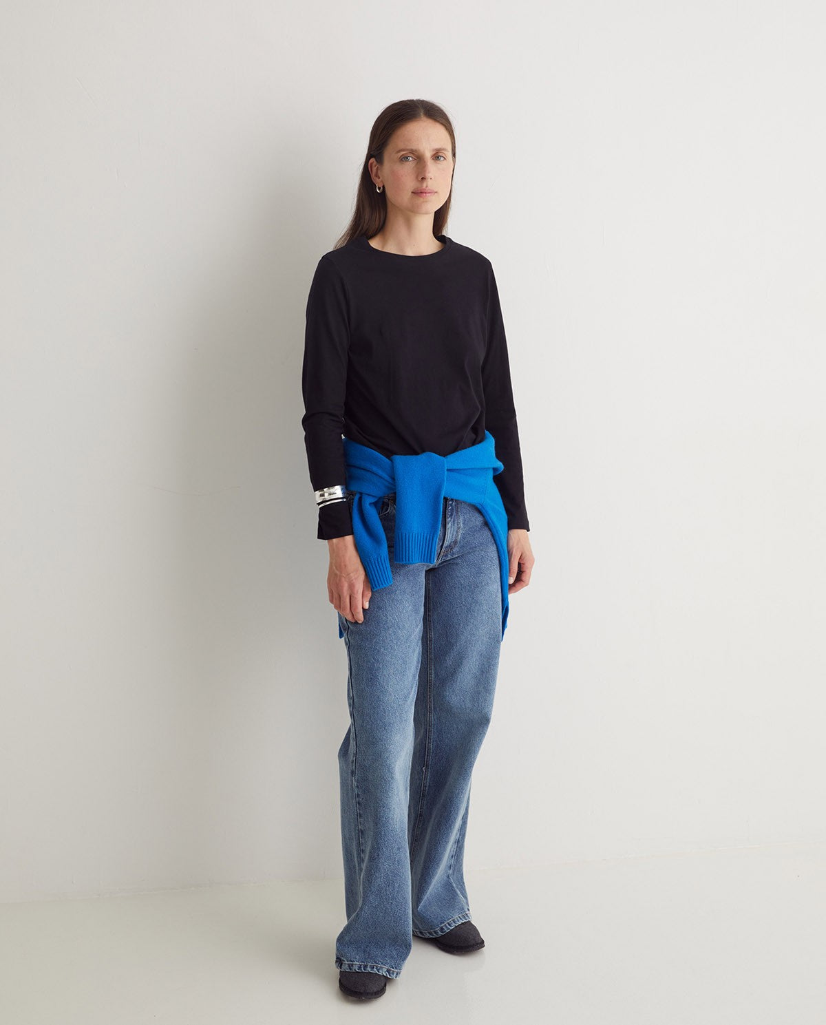Maglietta in cotone biologico al 100%.  Vestibilità regolare.  Scollo rotondo.  Maniche lunghe.  Dettaglio del logo ricamato.  Composizione: 100% cotone biologico. La modella è alta 175 cm e indossa la taglia S.   MATERIALI:  Il cotone biologico viene coltivato senza pesticidi o fertilizzanti chimici, il che lo rende un'opzione più morbida e delicata sulla pelle.  È biodegradabile e prodotto in modo sostenibile ed ecologico, riducendo al minimo l'impatto sull'ambiente.